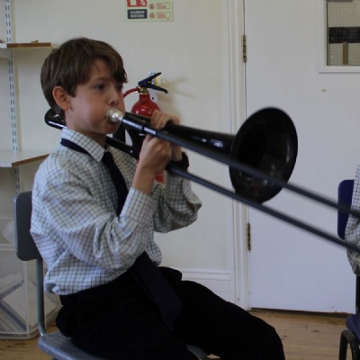 We’ve learned all sorts about brass and woodwind instruments, and some boys even got a chance to have a go on a trombone.