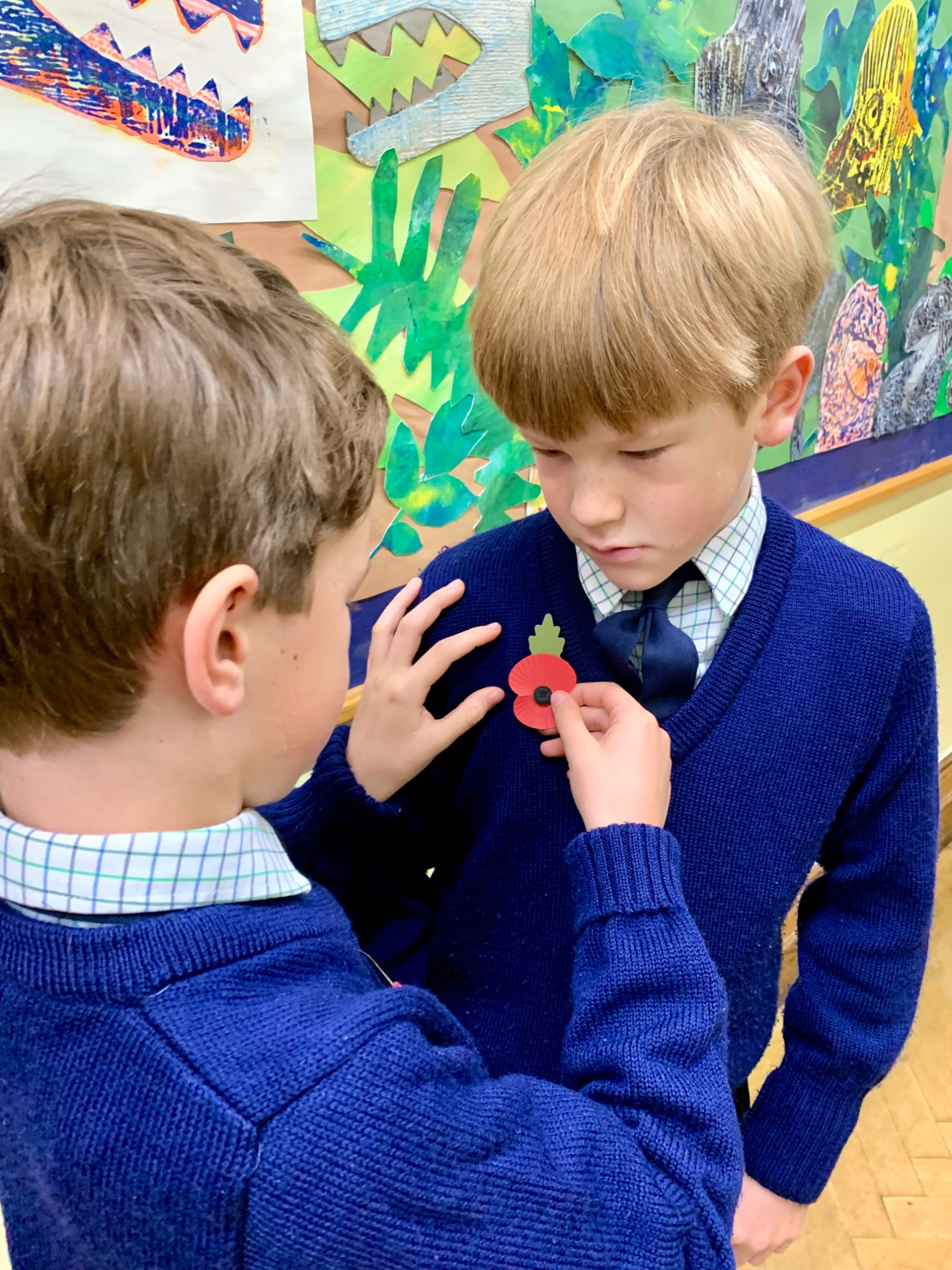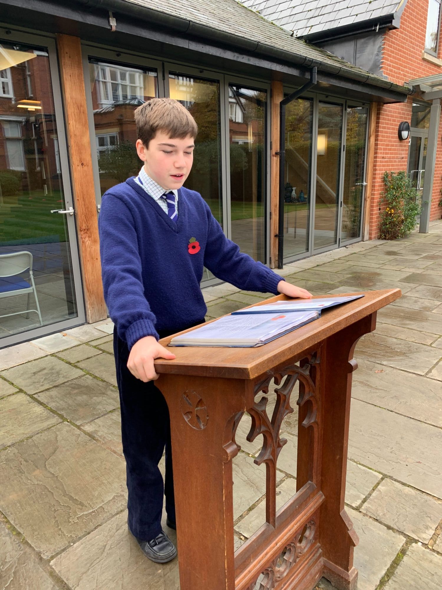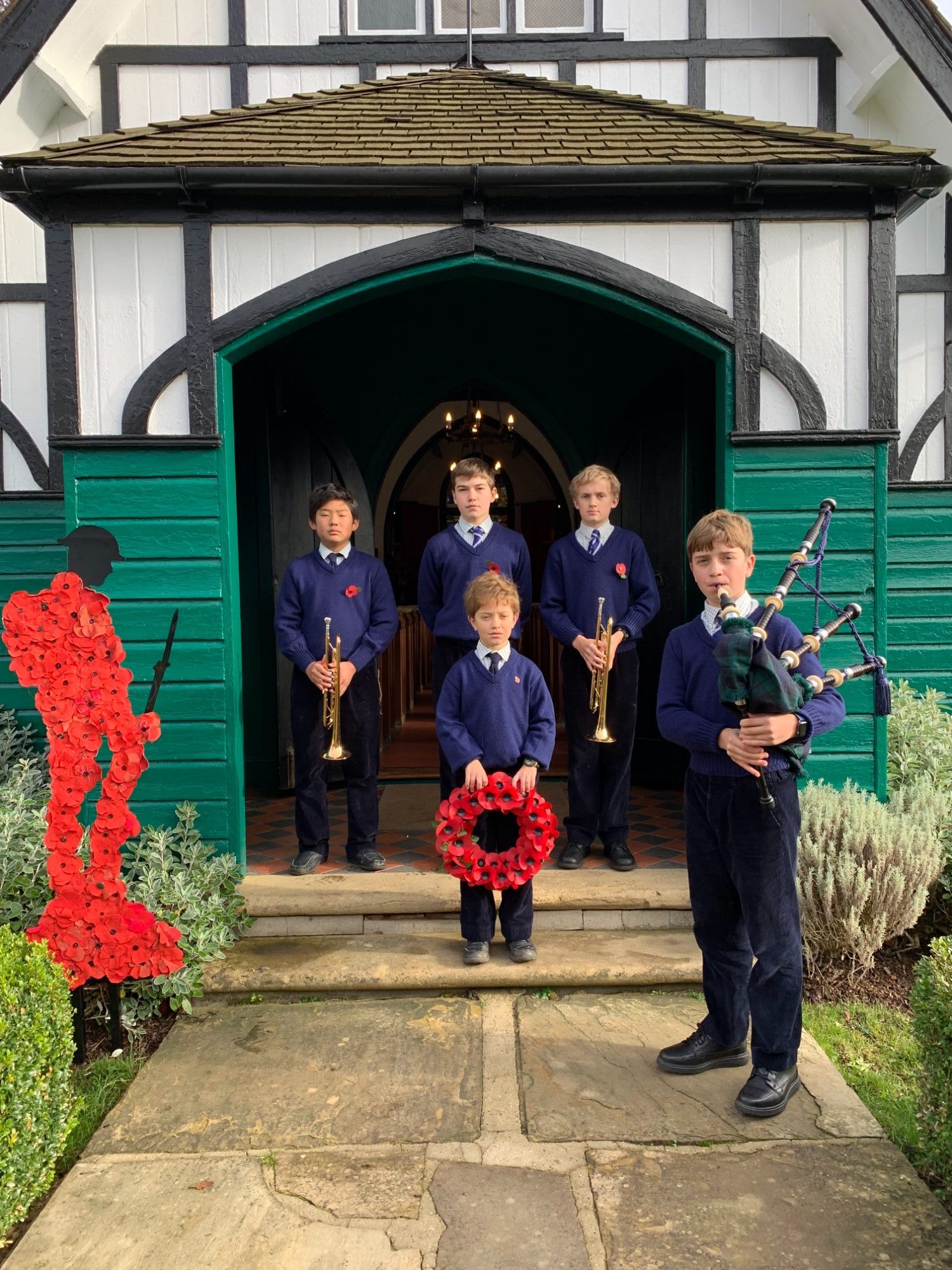 Captain of School, Henry, read "In Flanders Fields" before Jack piped the procession from the Quad to the Chapel where his brother, and youngest boy in School, Henry, laid a wreath at the altar.