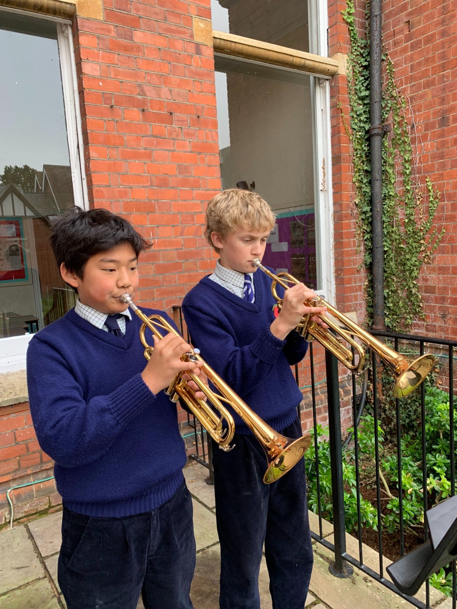During the moving Act of Remembrance, Headmaster Mr Barber read out the names of all OLs who gave their lives during the conflicts followed by the Last Post and Reveille played by Benji and Billy.