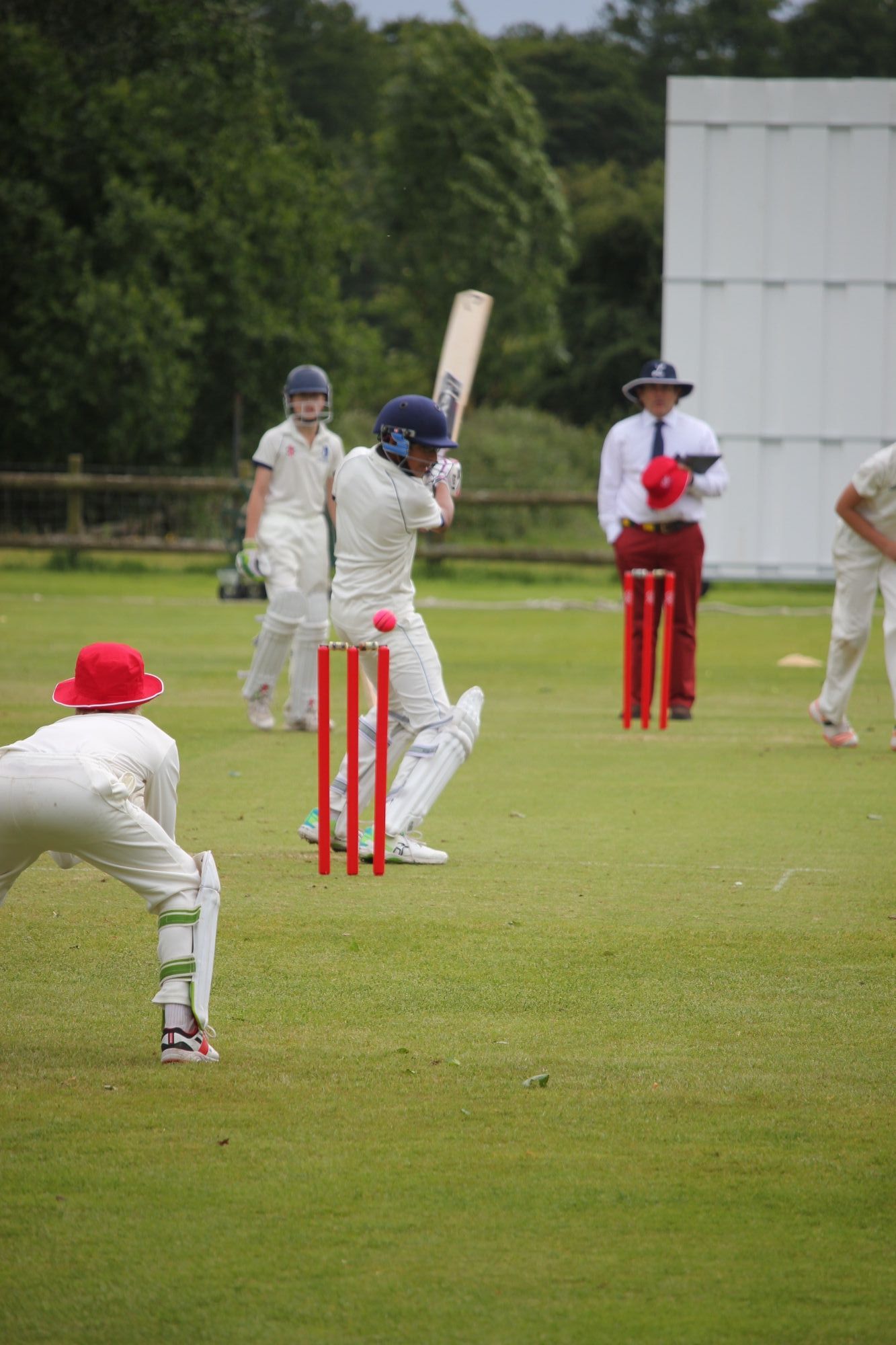 Every year the cricket community goes #RedForRuth to raise vital funds and so Ludgrove chose the 1st XIs’ last Home match to show the School’s support with red stumps and bucket hats replacing Ludgrove’s normal blue colours.